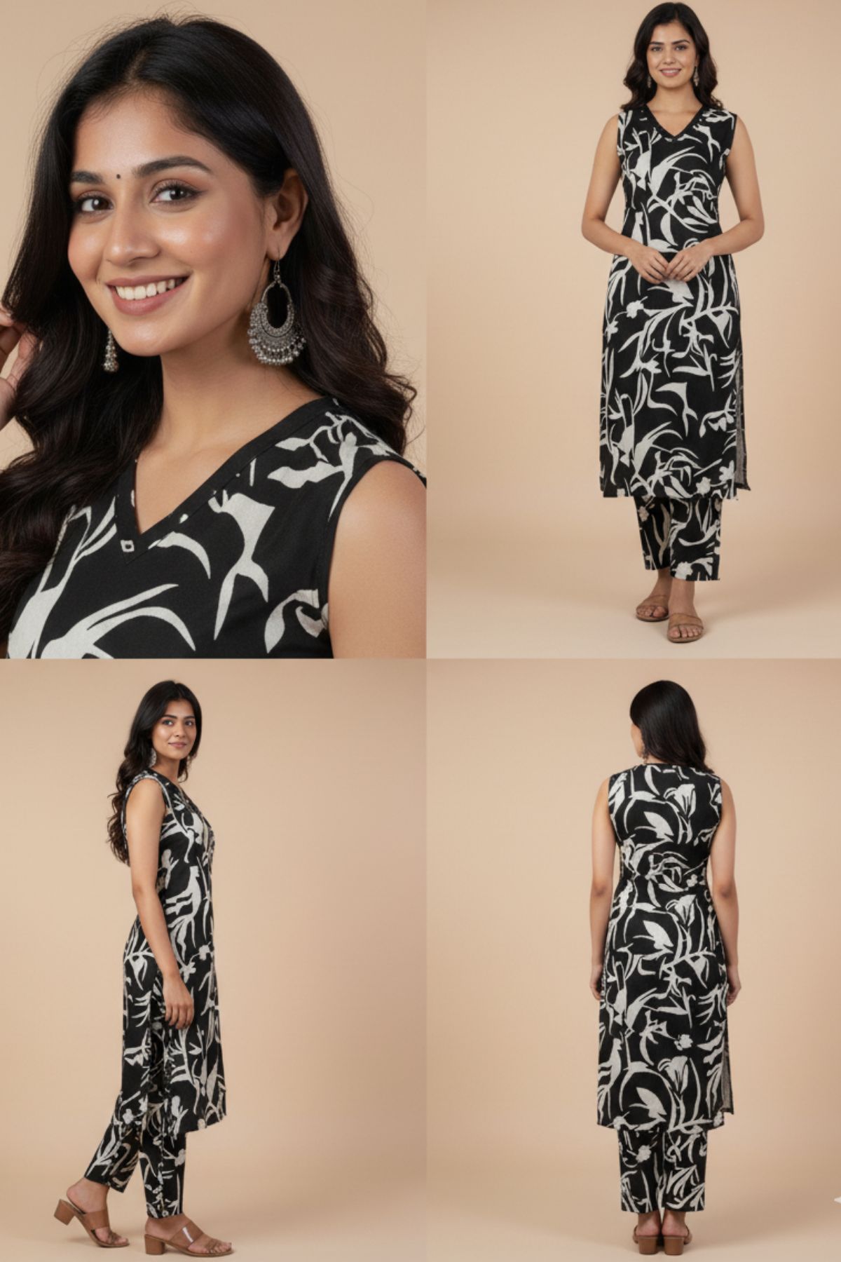 3 reviews for IRAMIKA Women Casual Cotton Printed Kurti With Pant (Black)